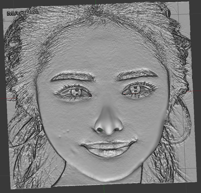 리터칭을 통해 얻은 이미지를 활용하여 다음과 같은 3D 부조를 모델링함.