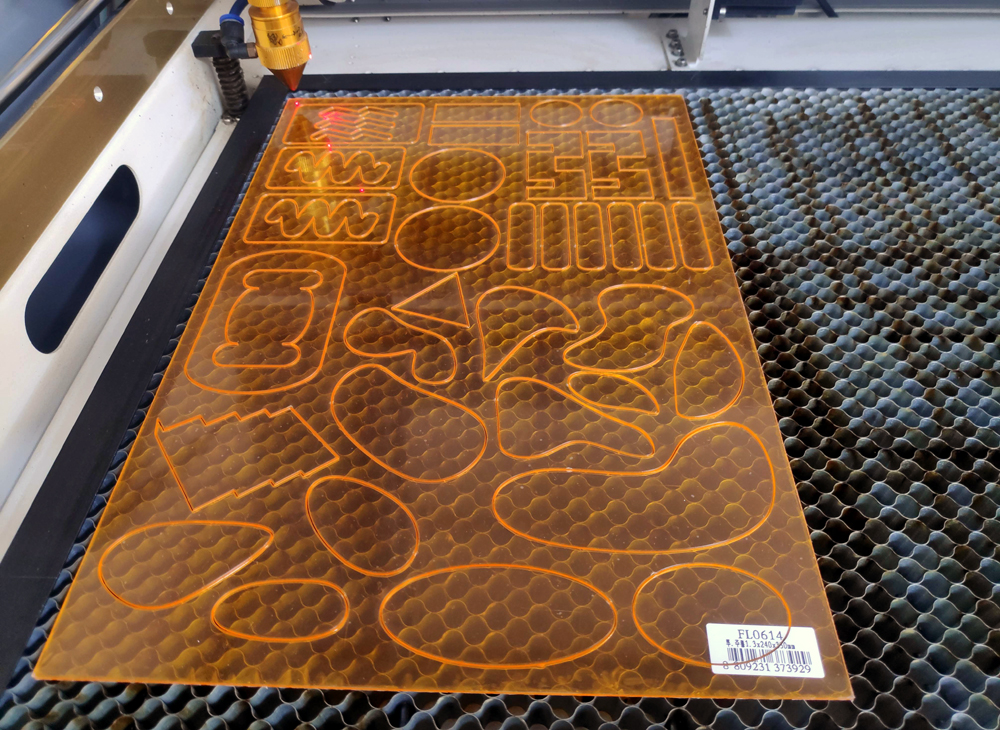 아래는 1.3t 투명아크릴판을 도안(일러스트레이터, 캐드dxf)을 활용하여 깔끔하게 레이저커팅한 것입니다. 다수의 커팅결과물들 중 1개만 샘플로 포스팅하였습니다. 추가적으로 메탈효과를 보여주는 아크릴판에 장비사양을 나타내는 표(table)을 레이저각인한 것입니다.