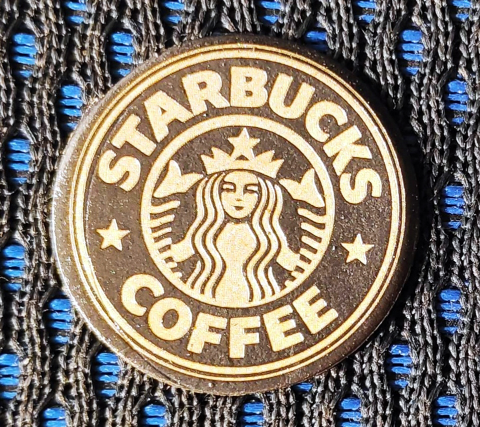 아래는 황동판에 스타벅스로고이미지를 레이저마킹을 한 것으로 깔끔한 표현효과를 보여줍니다.