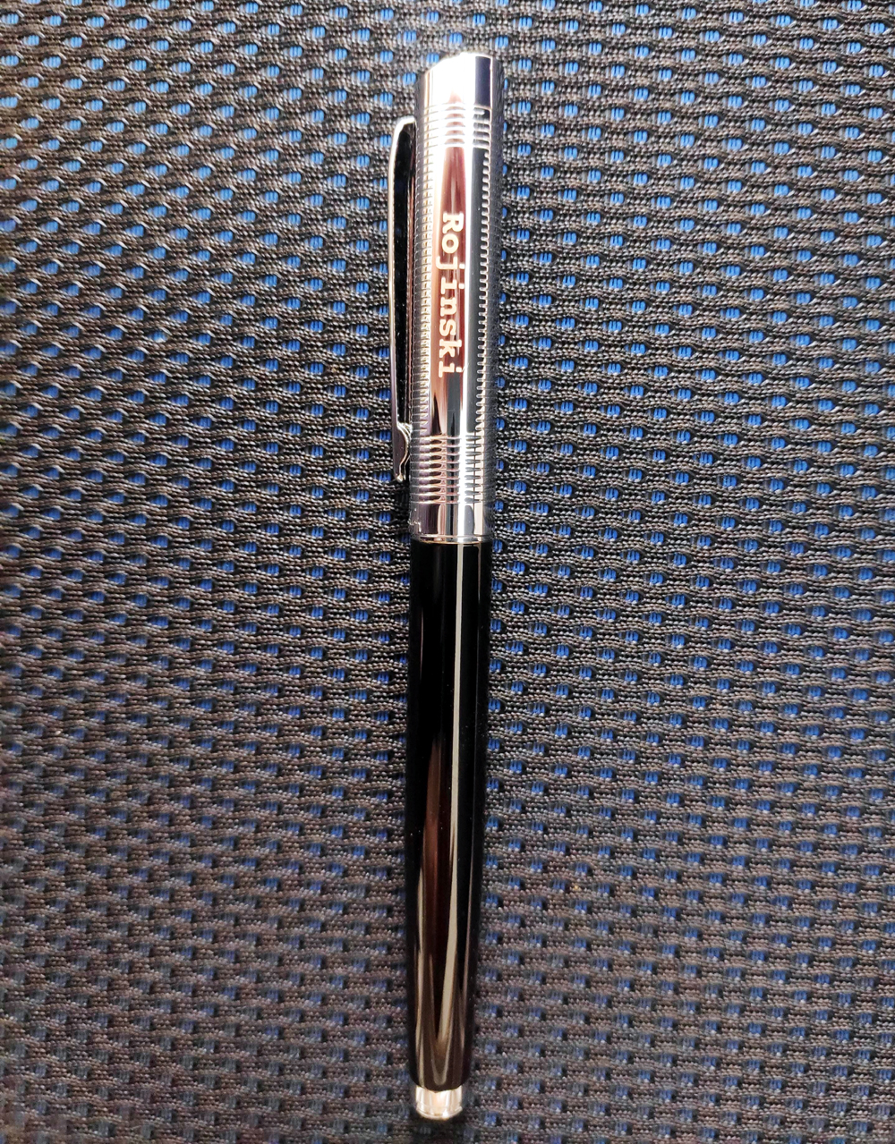 아래는 만년필의 금속두껑부분에 레이저마킹을 한 것으로 깔끔한 음각효과를 보여줍니다.