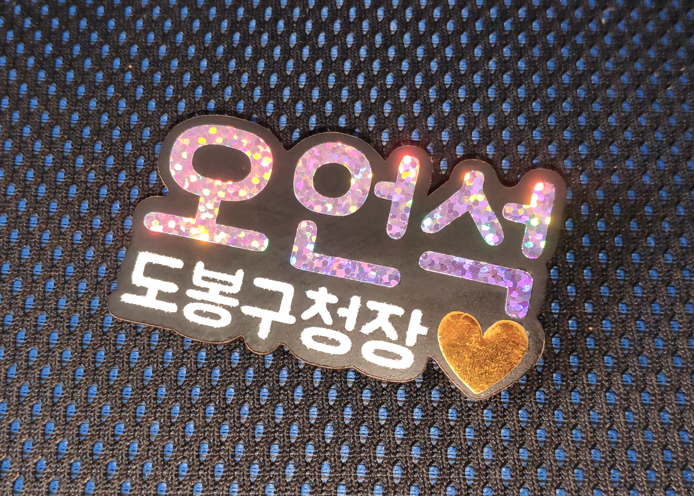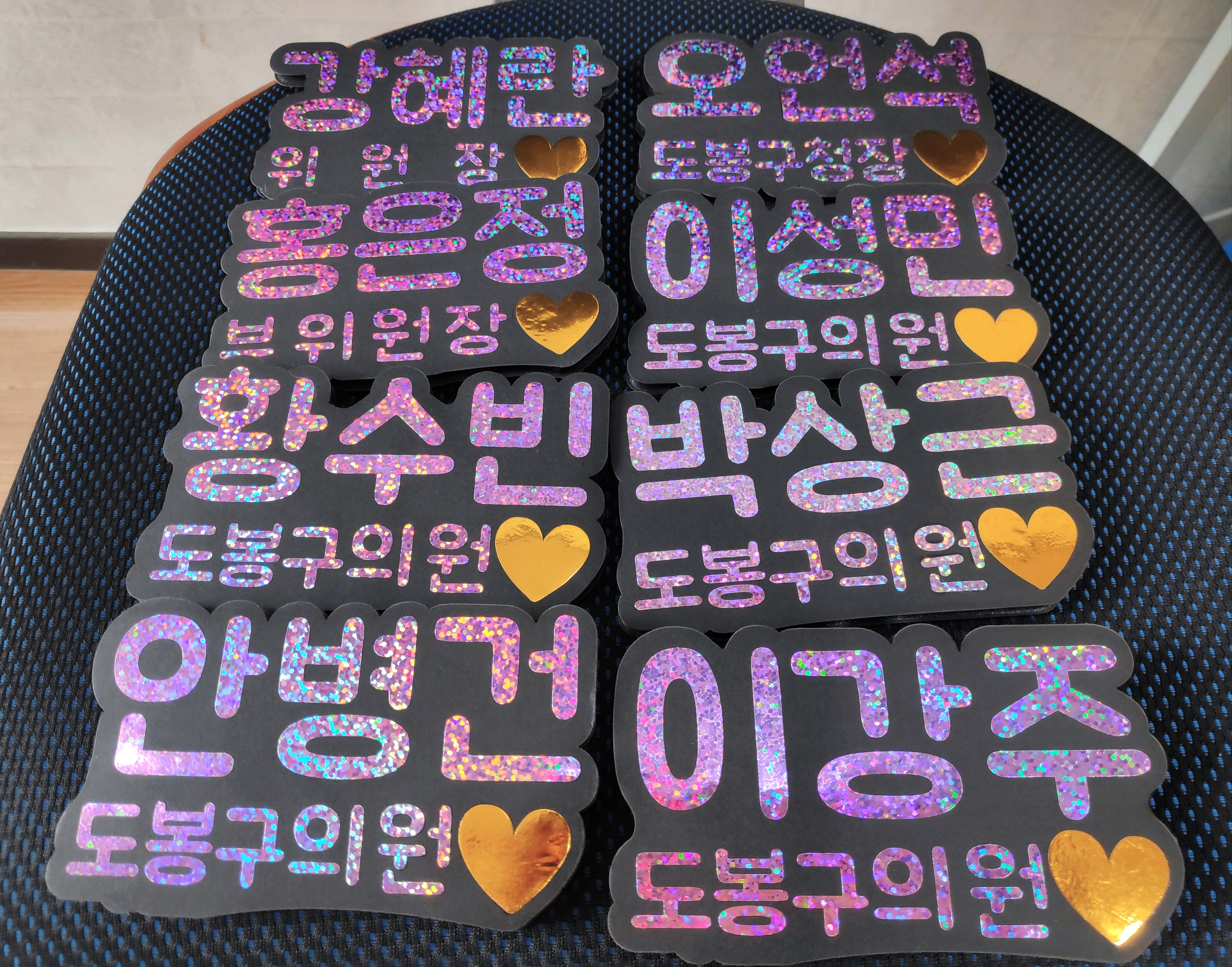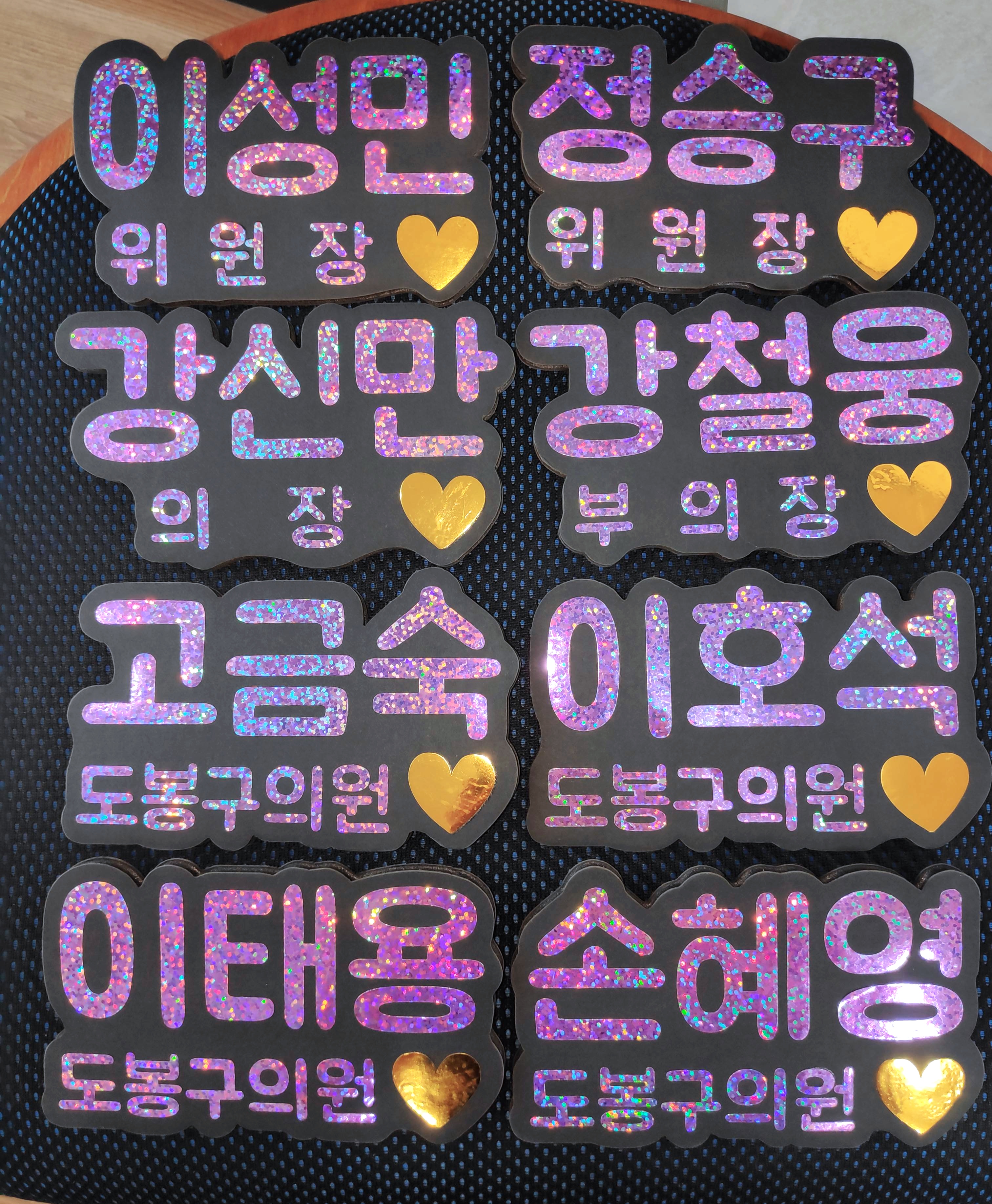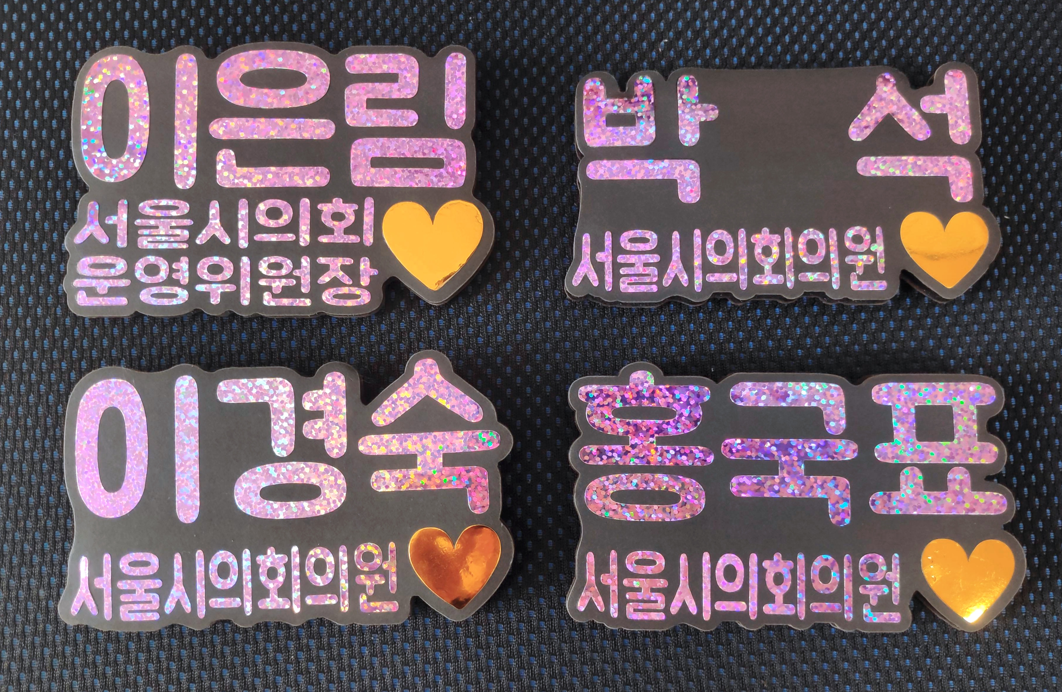최근에 글리터링네임택(반짝이이름표명찰) 제작의뢰를 받아 디자인 및 제작을 하여 아래와 같은 결과물을 완성하였습니다.