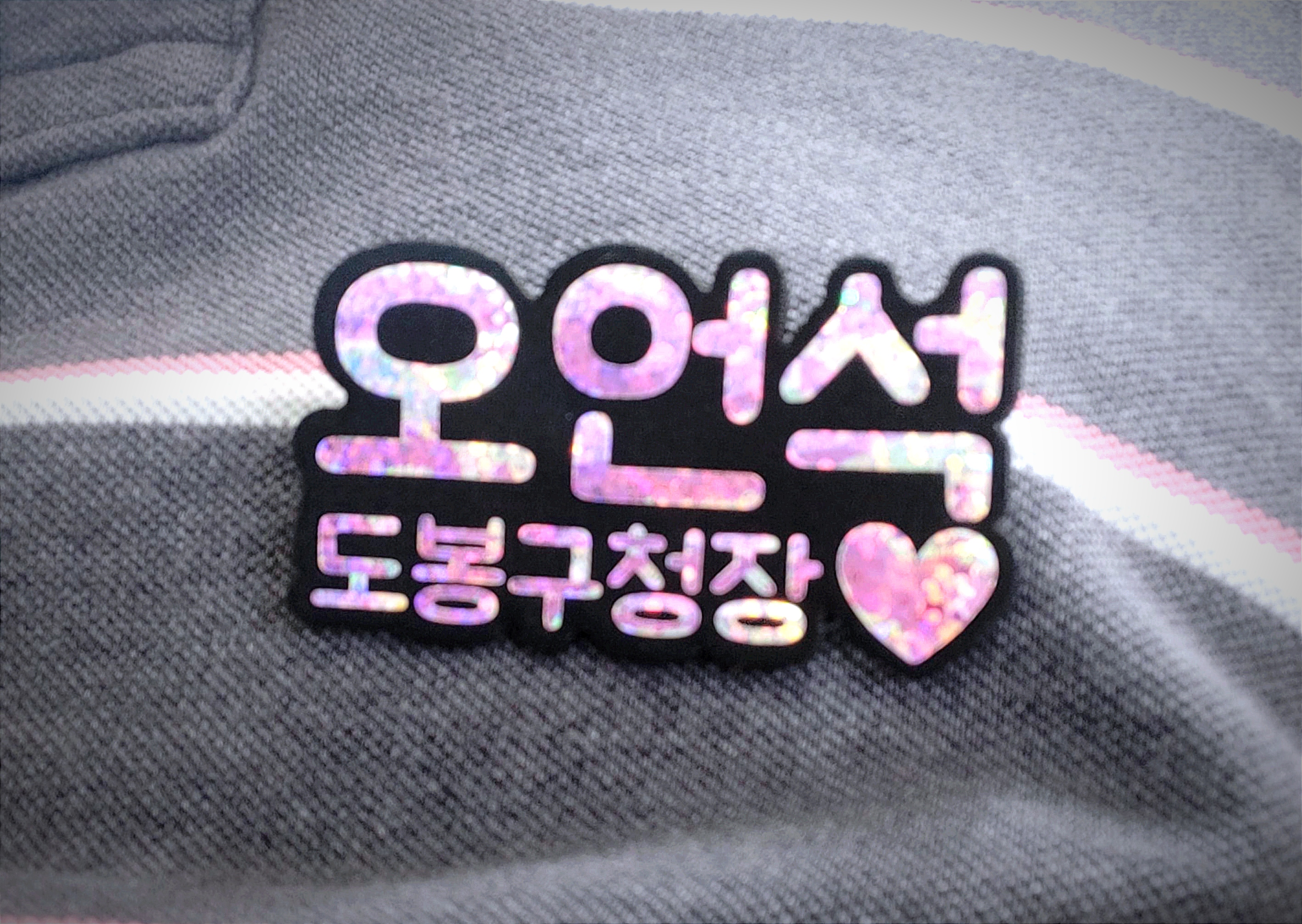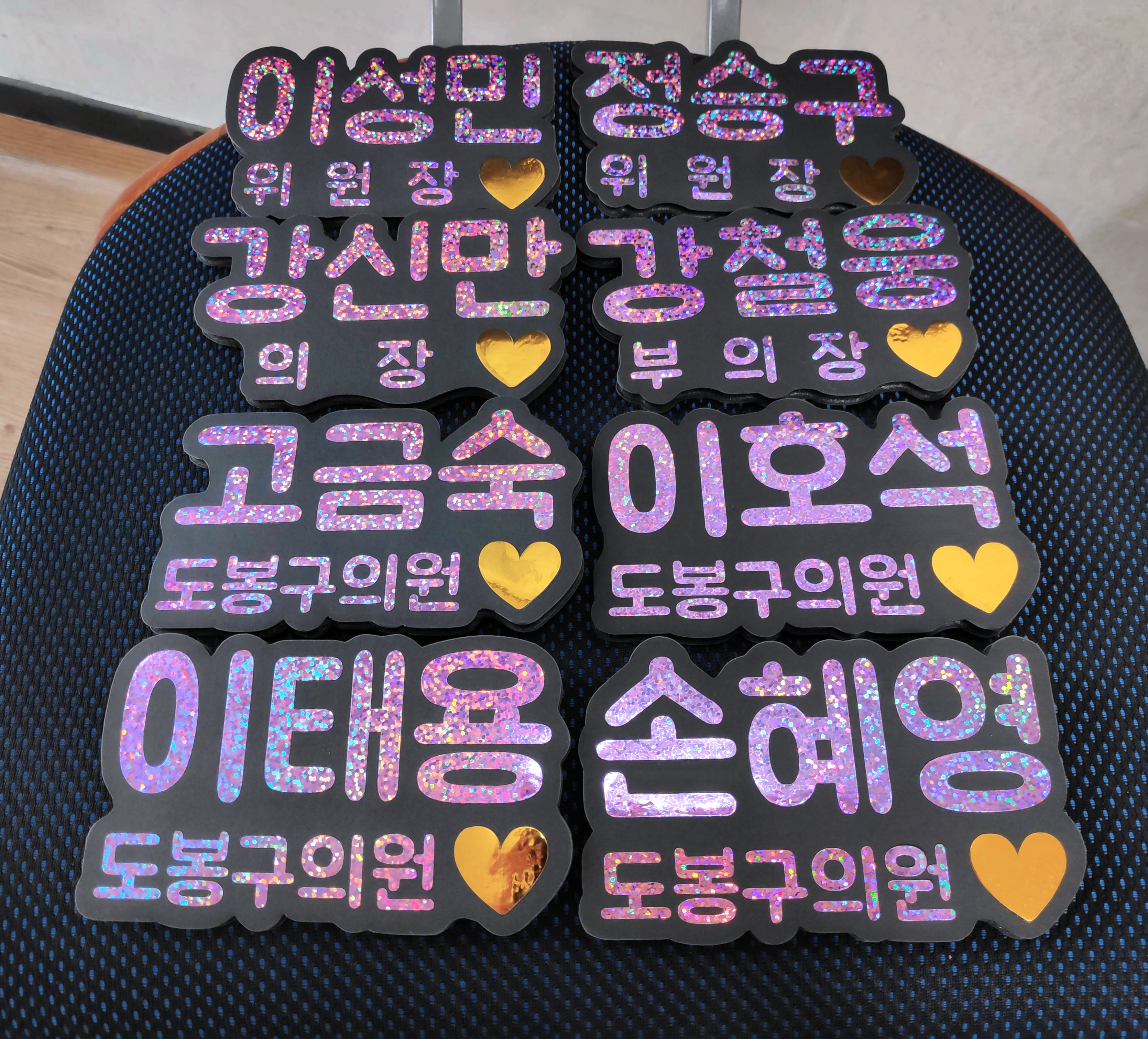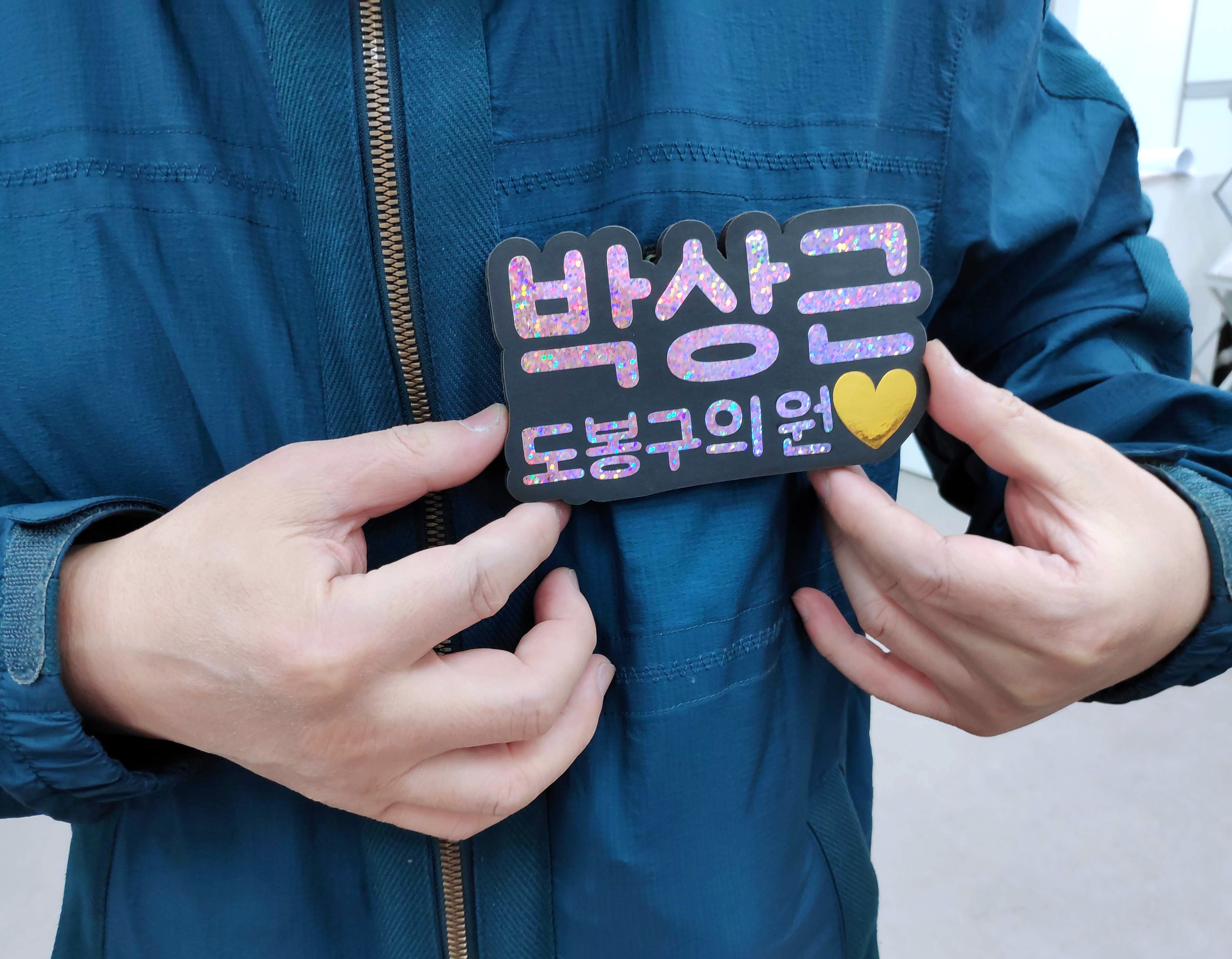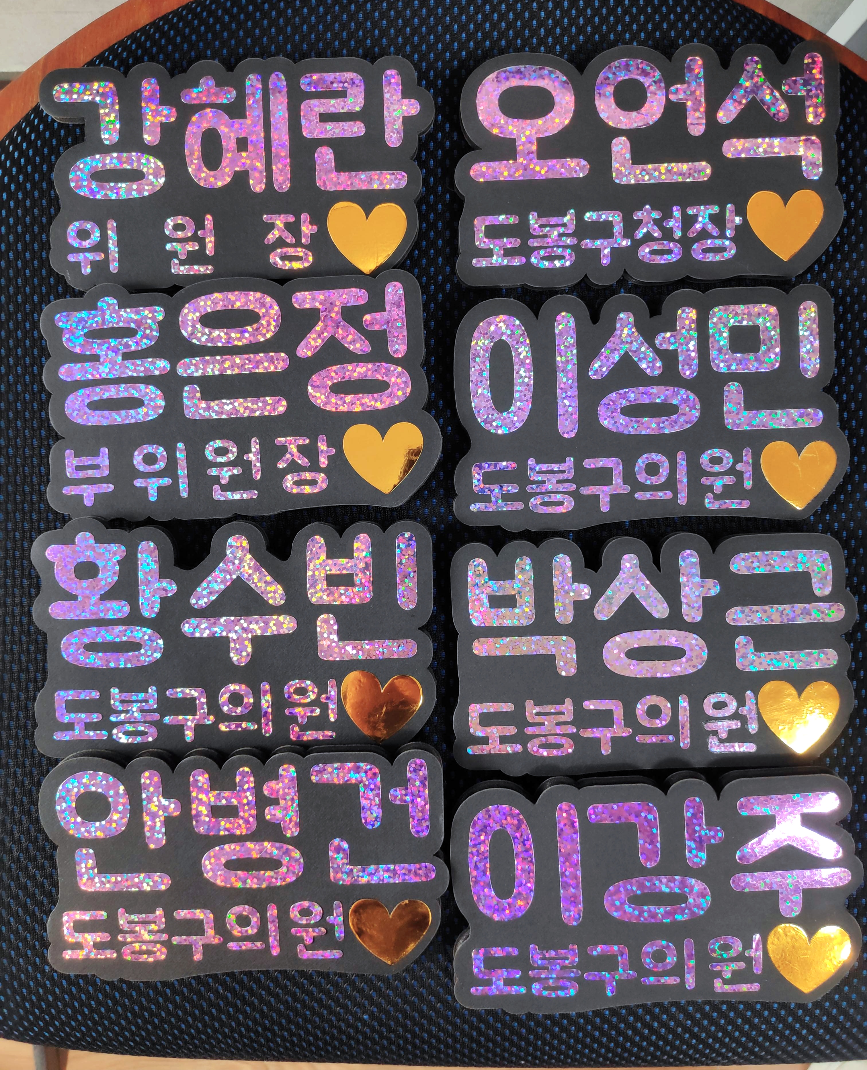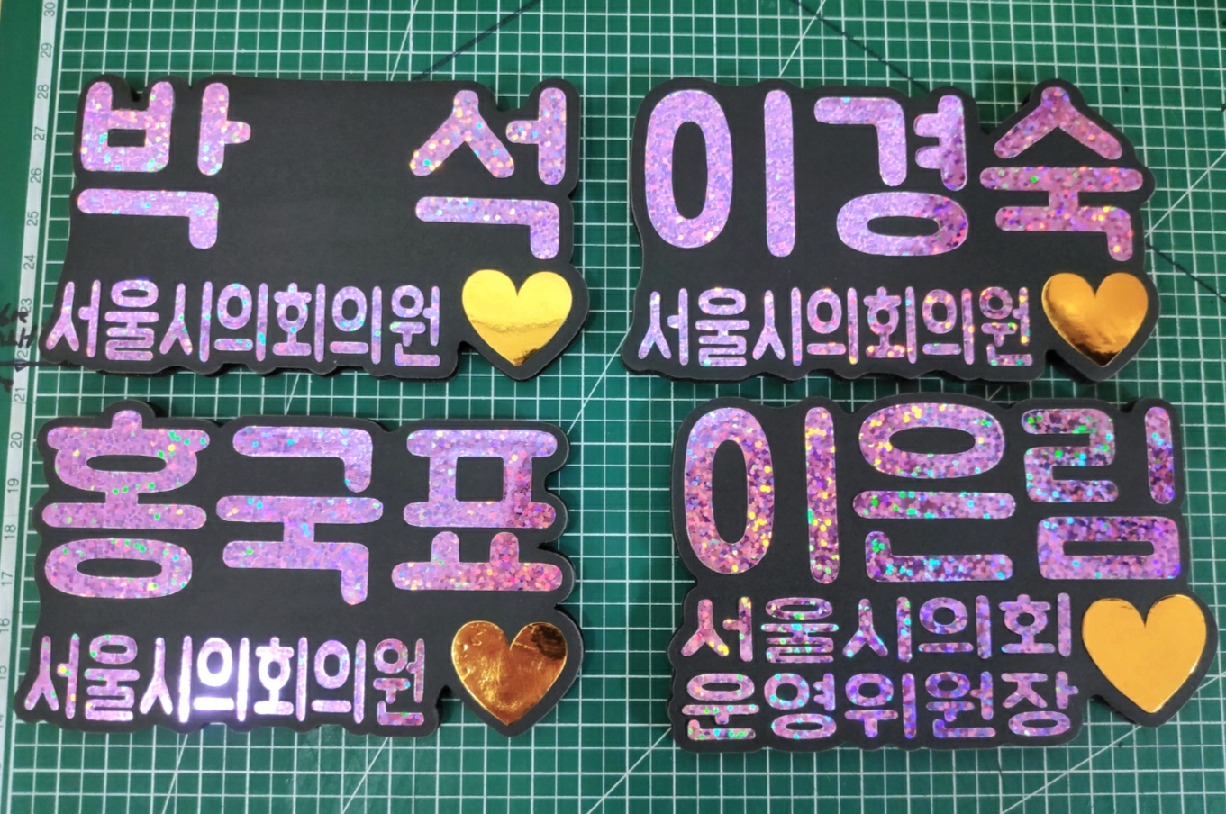 최근에 글리터링네임택(반짝이이름표명찰) 제작의뢰를 받아 디자인 및 제작을 하여 아래와 같은 결과물을 완성하였습니다.