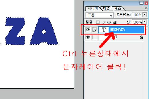 (4) 문자가 선택된 상태에서 ctrl키를 누른 상태에서 문자가 생성된 레이어를 클릭합니다.