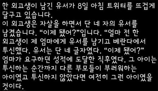 [펌] 한 외고생이 자살 전 남긴 유서