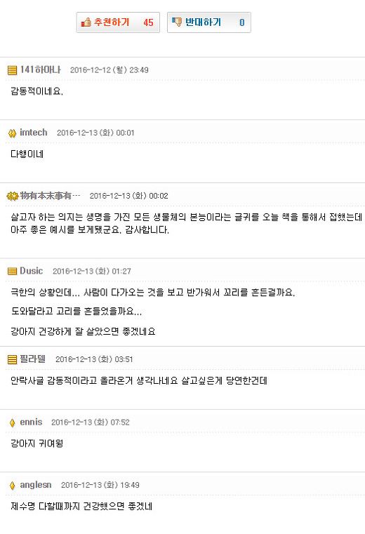 고열에 시달려 길가에서 죽음을 맞이할 만한 절망적인 상황에 있었지만,이 개는 살 희망을 잃지 않았던 것이고, 강아지에게 남은 마지막 힘을 다해 꼬리를 흔들고 구조대에 도움을 요청하고 "살려주세요"라고 말하는 듯, 남아있는 모든 힘을 다해 열심히 꼬리를 흔들었던 것임
