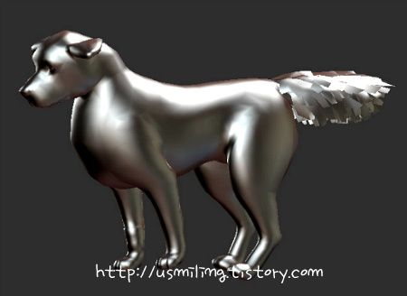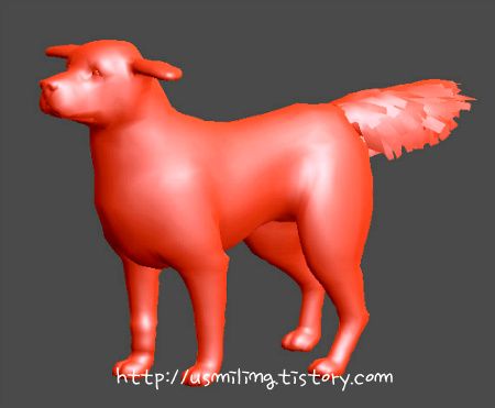 아래는 기본 강아지 모델링 형상임. 꼬리털이 저리 많은 강아지가 있는지는..