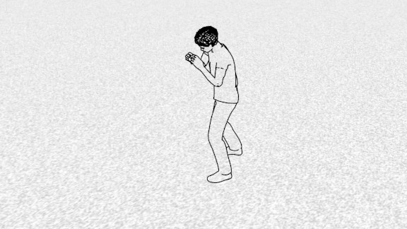 아래는 권투연습을 하는 3D 인간모델링으로 2D 느낌의 애니메이션 영상을 만듦.