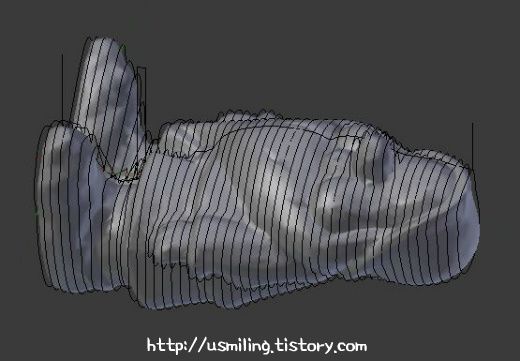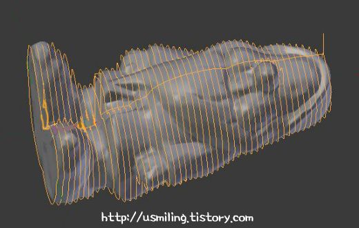 아래는 정삭 툴패스를 선택한 이미지 (주황색선이 툴패스)