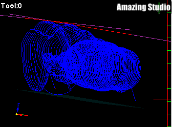 이와 같이 3D모델링의 형상이 4축가공을 해야 하는 경우에는 CAM에서 툴패스를 생성하여 이를 시뮬레이션해야 하는데 이 때 MACH3 데모버전으로도 시뮬레이션이 가능함을 알 수 있음.