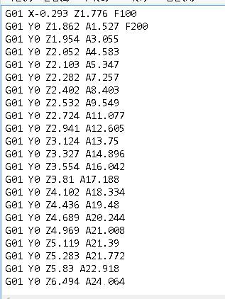 위에 보이는 주황색선 (툴패스)를 G코드로 생성하면 아래와 같다. (상당히 길기 때문에 일부만 캡쳐함)