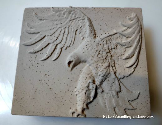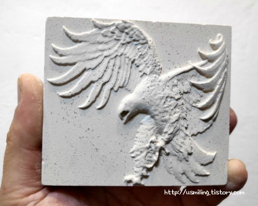 아래는 CNC조각기로 가공한 도자기 독수리부조임.