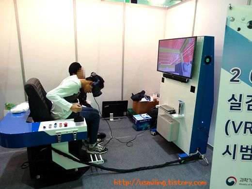 타워크레인 가상체험(VR)을 하고 있는 모습.