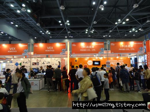로봇에 대한 교육열이 확실히 높아진 것 같음. 교육로봇부스에는 관람객들이 많음.