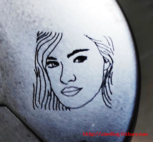 아래사진은 위에 작업한 사진의 실제 얼굴이미지임. 이런 방법으로 다른 재료에도 활용이 가능할 것으로 보임. 예를 들면, 황동 또는 알루미늄과 같은 재료에 적용함으로써 작품화하는 작업.