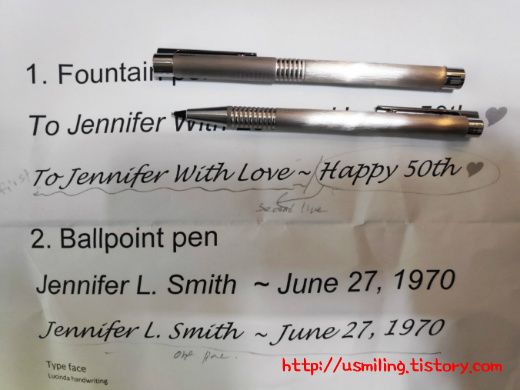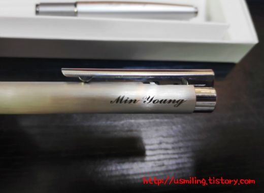 아래는 최근에 의뢰들어온 외국인의 친구생일선물용 만년필과 볼펜에 아래와 같은 영문각인을 하였으며, 매우 만족한 결과물을 얻을 수 있었음.